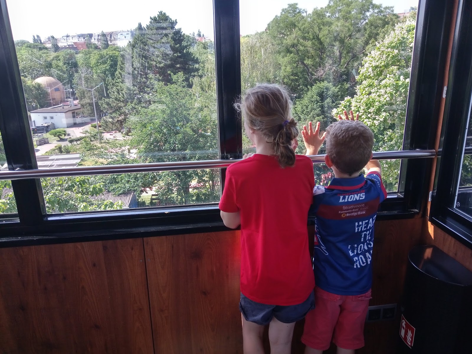From our hotel, we walked along the Danube towards central Vienna. There were small playgrounds every few blocks, so they were a great way to break up the walking with something fun.